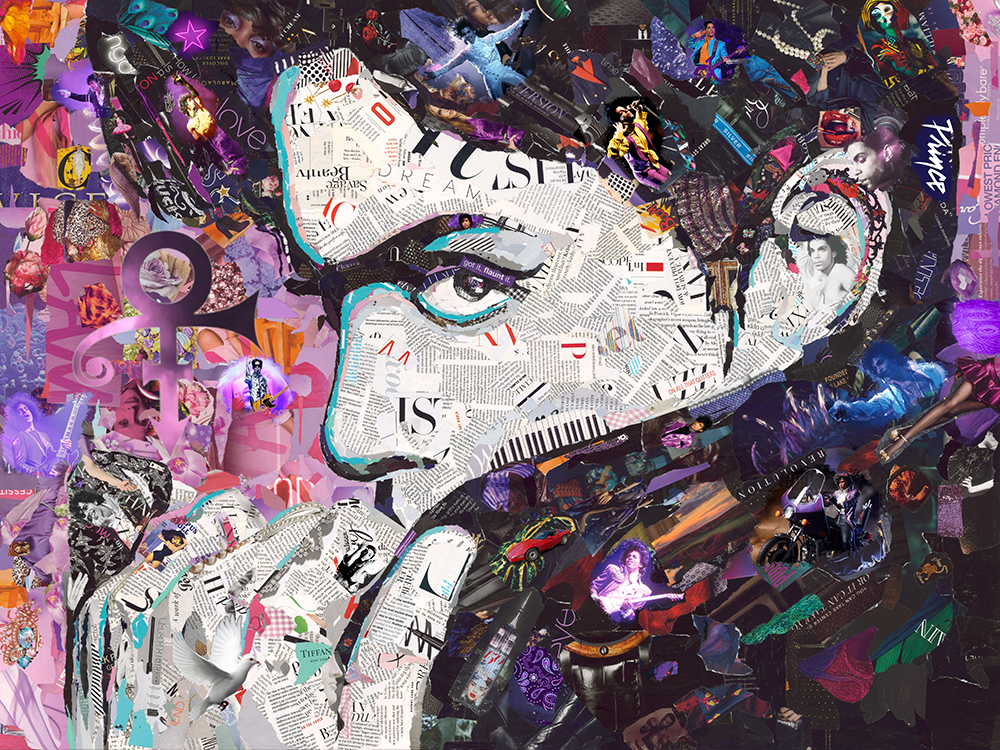 Orlando-based collage artist layering pop-culture fragments and personal history into vivid, mixed-media portraits.