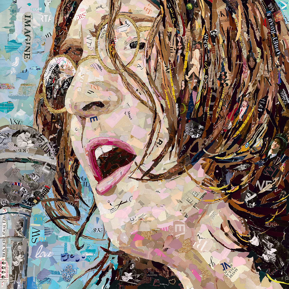 Orlando-based collage artist layering pop-culture fragments and personal history into vivid, mixed-media portraits.