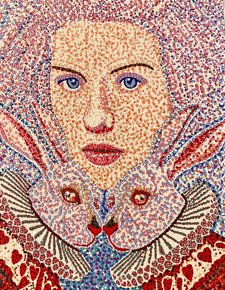 I’m able to render such amoebic-like results by developing an exclusive pointillism process using Pebeo Prisme paint.”