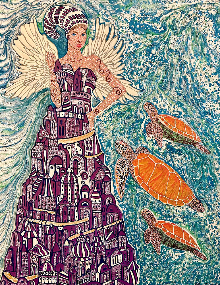 I’m able to render such amoebic-like results by developing an exclusive pointillism process using Pebeo Prisme paint.”